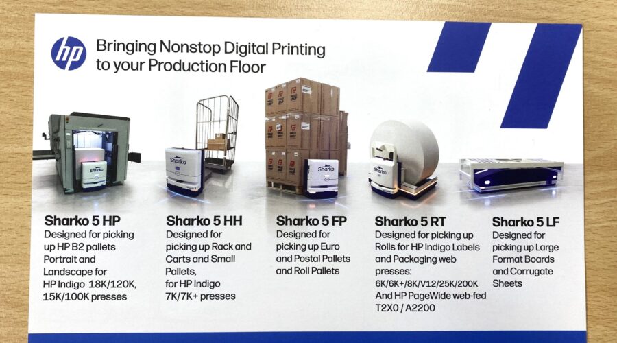 For the first time, HP will sell and fully support these AMRs directly, enabling true end‑to‑end automation across the entire production floor. The strengthened portfolio includes AMRs designed for B2 pallets of HP Indigo Commercial sheet-fed presses, as well as postal pallets, carts, and racks. It also introduces the new Sharko 5 RT, purpose-built for web presses across HP Indigo Labels and Packaging and HP PageWide roll transport environments.’
